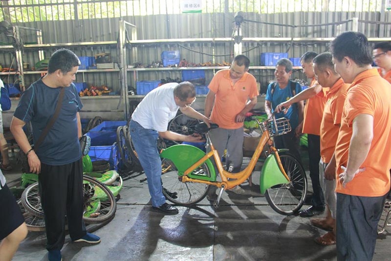 座談會過后,市民代表們一行還參觀了健寧公司維修中心,近距離了解了公共自行車維修的每道工序?吹綀龅財[放著一臺臺"受傷"的公共自行車,他們不禁感慨道:公共自行車的發(fā)展,不僅要靠健寧公司的維護,更要靠大家的愛護。