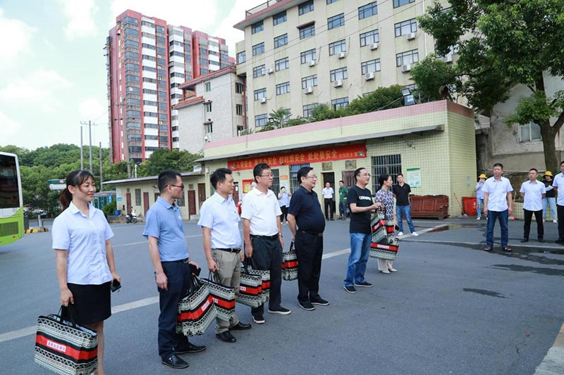時(shí)值酷夏,暑熱大地。為了給奮戰(zhàn)在一線的廣大職工送去企業(yè)的關(guān)懷,切實(shí)維護(hù)高溫期間廣大職工的身心健康,做好防暑降溫工作,7月27日下午,株洲公交公司黨委書記、董事長(zhǎng)肖長(zhǎng)江和黨委副書記、總經(jīng)理李柏堅(jiān)帶領(lǐng)公司班子成員及相關(guān)部門負(fù)責(zé)人分兩組對(duì)珠江南路、ART神龍大劇院站、石峰區(qū)清石基地、晏家灣公交基地、火車站、四橋、修理廠等一線生產(chǎn)現(xiàn)場(chǎng),慰問奮戰(zhàn)在高溫環(huán)境下的一線職工,為他們送去防暑降溫物品和濃濃關(guān)愛。