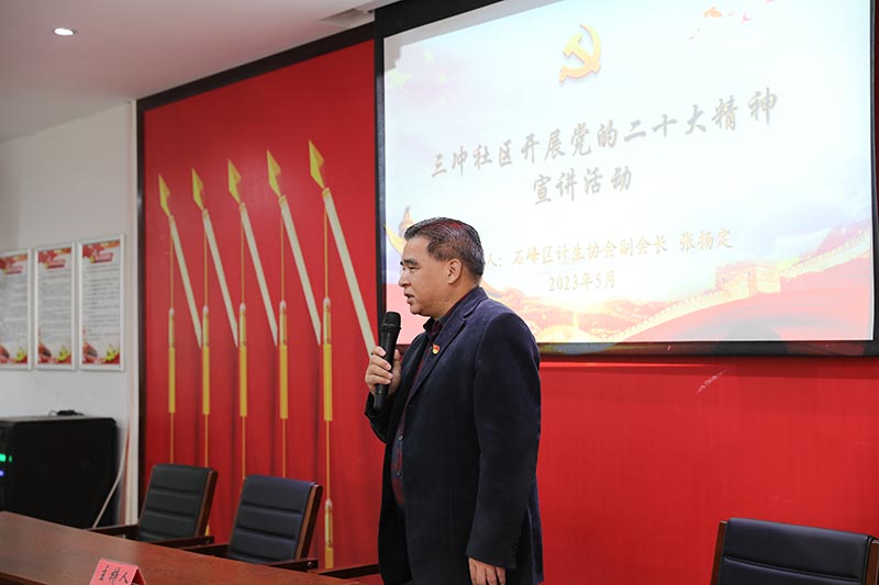 青年志愿者們走進(jìn)社區(qū)服務(wù)中心,認(rèn)真學(xué)習(xí)了石峰區(qū)計(jì)生協(xié)會(huì)黨組書(shū)記、常務(wù)副會(huì)長(zhǎng)張揚(yáng)定"深刻理解黨的二十大精神的重大意義 全面貫徹落實(shí)黨的二十大精神"的黨課宣講,進(jìn)一步了解了黨的二十大精神內(nèi)涵和最新方針政策。